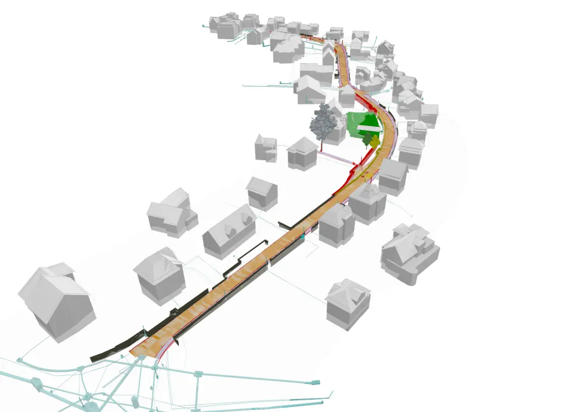 Unser Angebot reicht von der Zentrumsgestaltung über die Erschliessung von Bauland bis hin zur Erstellung von Lärmschutzwänden und -Wällen. Neben Strassen ist die Versorgung ein wichtiger Pfeiler im Tiefbau. Deshalb sind wir im Werkleitungsbau, in der Siedlungsentwässerung sowie in der Generellen Entwässerungsplanung GEP tätig. Unsere Expertinnen und Experten bieten zudem ein breites Fachwissen im Bereich Brücken-, Stege- sowie Bahnbau.