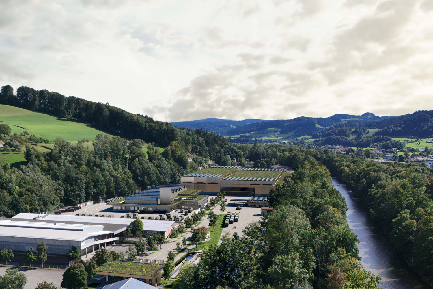 Der Ausbau der Logistikinfrastruktur in Burgdorf beinhaltet Neubauten von Logistikgebäude und Loge, die Sanierung des Werkstattgebäudes sowie die Erneuerung der Umgebung.