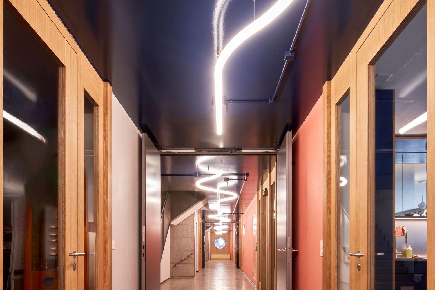 Die Tragwerksplanung bildete das Rückgrat der baulichen Massnahmen. Nach einer Bestandsaufnahme wurden im Untergeschoss Betonstützen in der Tiefgarage versetzt und die Decke mit CFK-Lamellen, Betonüberzügen und Stahlträgern verstärkt. Eine neue Rampe ersetzt die rückgebaute Innentreppe. Im Attikageschoss wurde die bestehende Konstruktion teilweise durch Holz ersetzt und statisch ertüchtigt. Aufgrund der geänderten Nutzung und der erhöhten Lasten waren auch hier statische Verstärkungen mit CFK-Lamellen notwendig. Trotz der Eingriffe blieb die Nutzung zentraler Infrastrukturen während der gesamten Bauzeit erhalten – dank präziser Planung und Koordination.