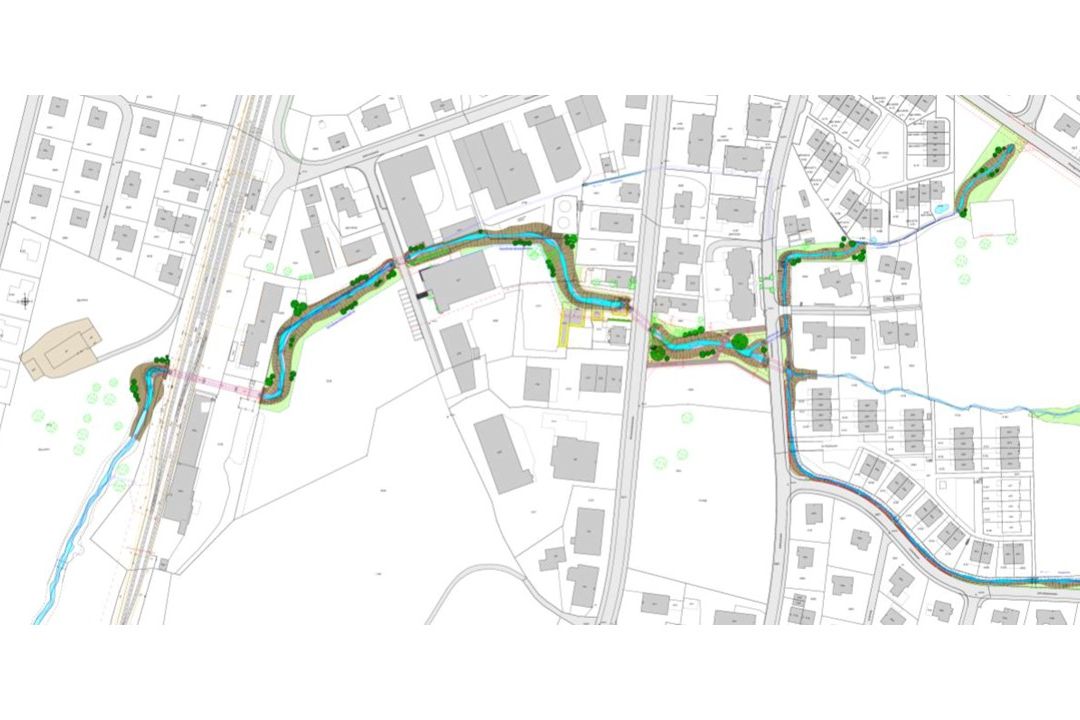 - vollständig neue Bachführung / Offenlegung durch das Dorf Arnegg, Ausbaulänge ca. 770 m