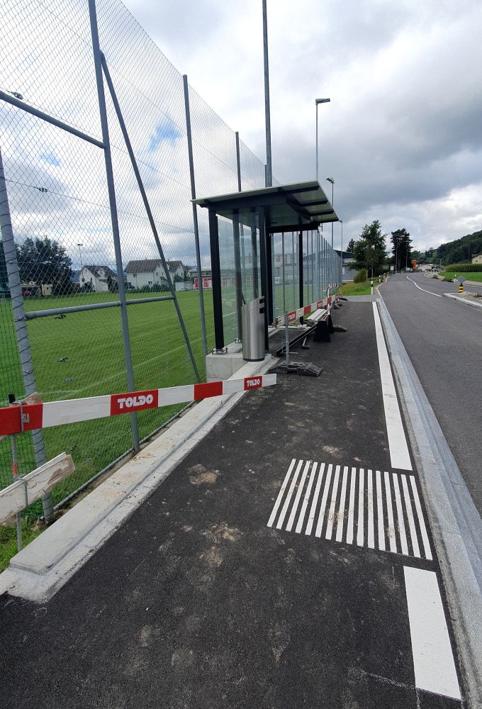 Die Bushaltestelle an der St.Gallerstrasse in Züberwangen wurde BehiG-konform geplant und umgesetzt.