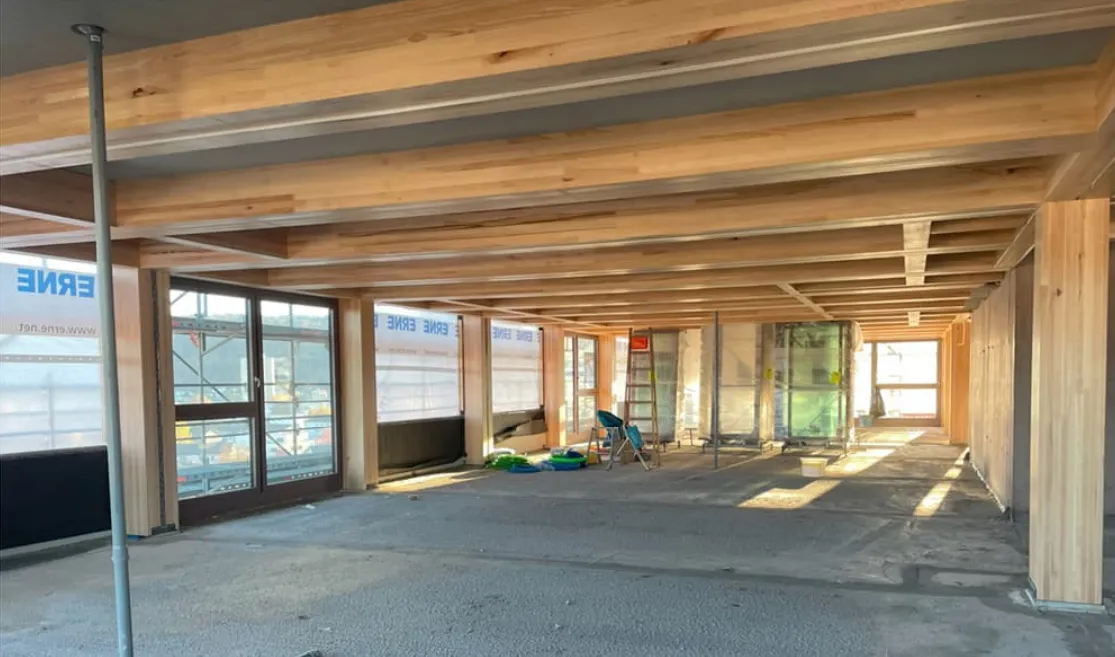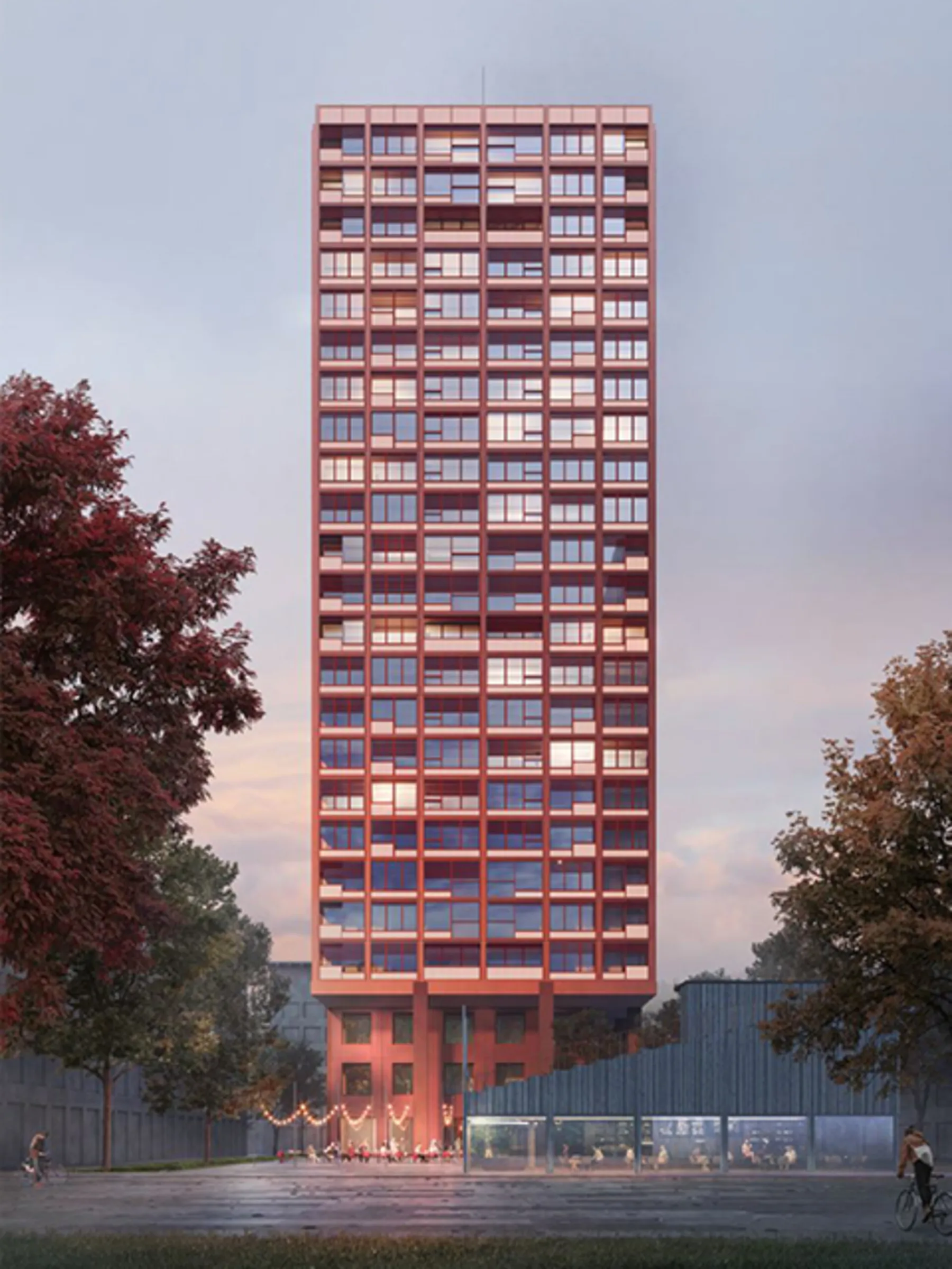 Holz-Hybridhochhausbau mit Buchen- Stabschichtholz