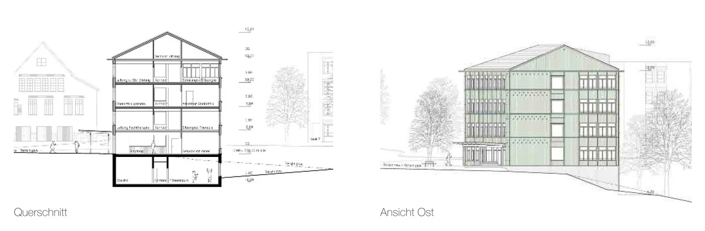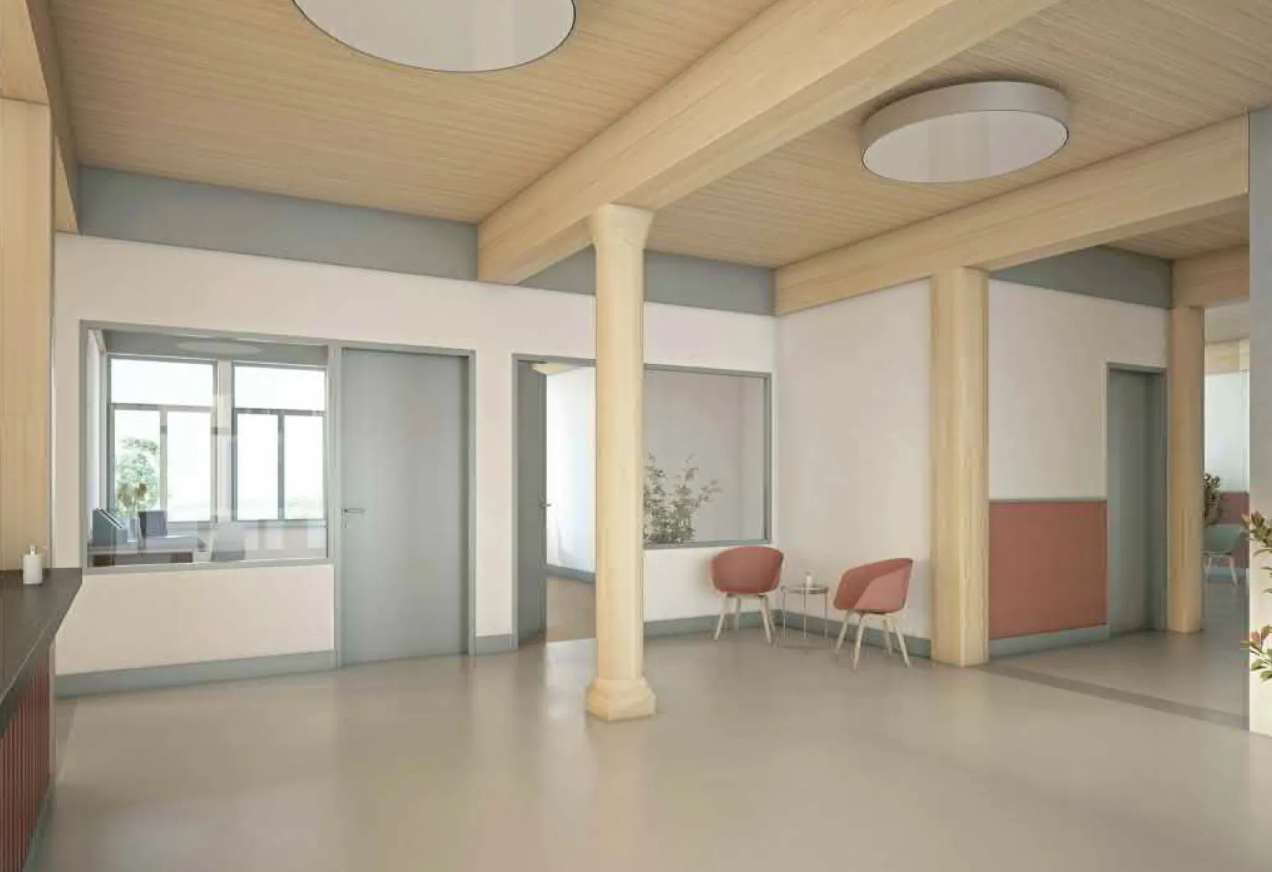 Besucher- und Therapiezentrum (BTZ) mit Tagesklinik, Fach- und Bewegungstherapie sowie zentralem Empfang für Besucher, Patienten und Gäste