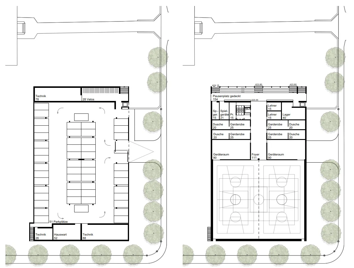Nachhaltige Doppelturnhalle in Holzbauweise mit öffentlicher Tiefgarage