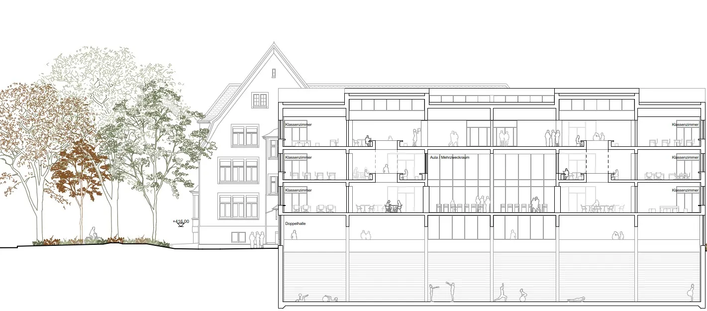 Schulraumerweiterung mit Klassenräumen, Aula und Doppelturnhalle