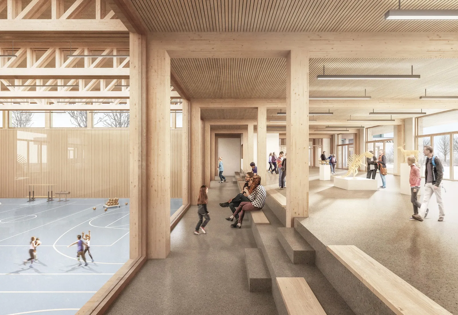 Mehrgeschossige Schulanlage in Holzbauweise