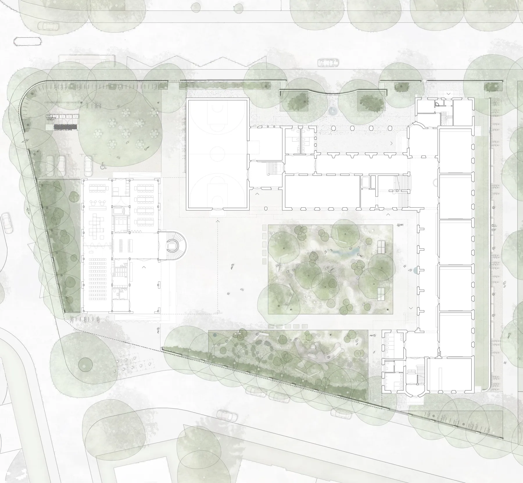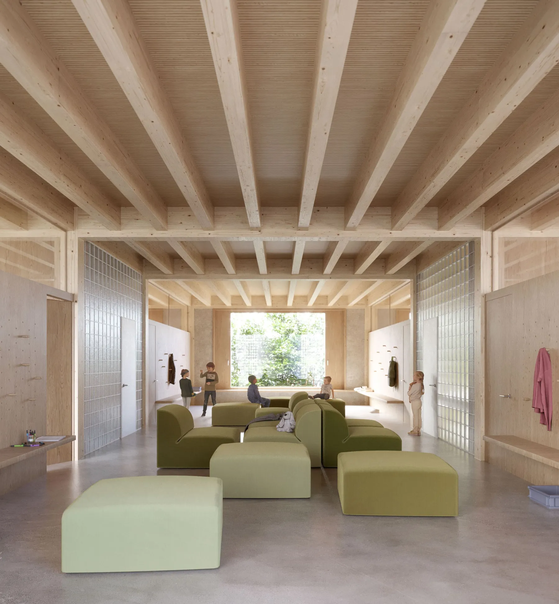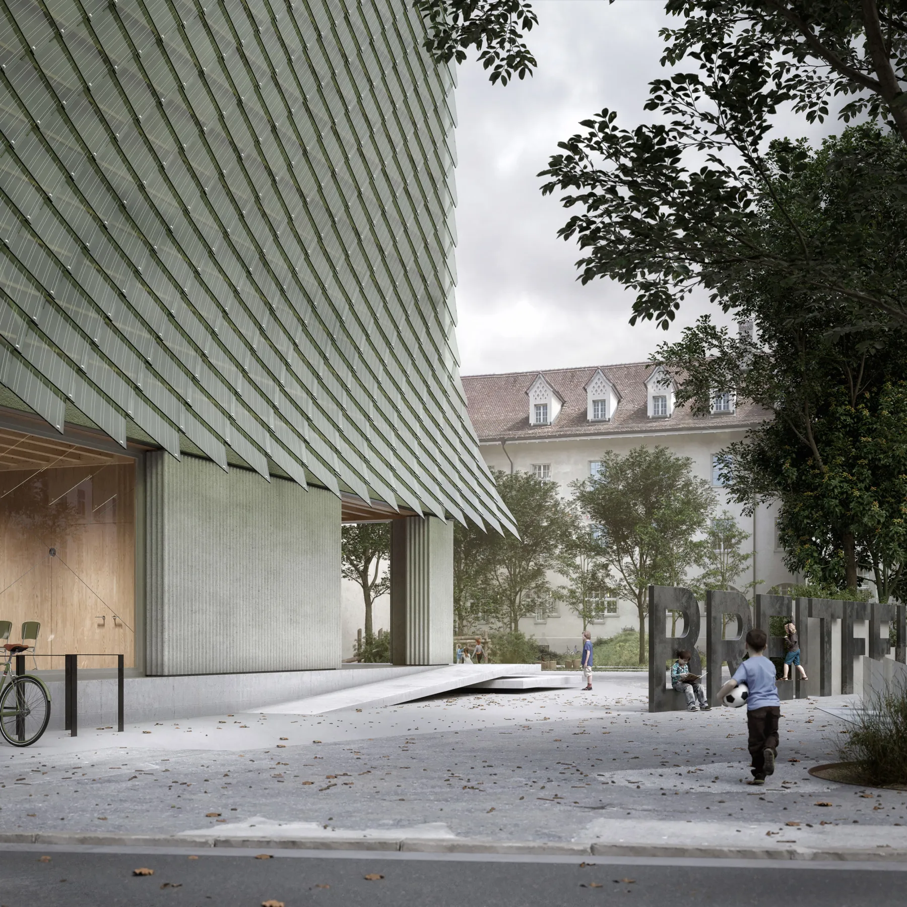Erweiterungsneubau in Holz-Hybridbauweise für fünf Klassen, eine Turnhalle und eine Tagesbetreuung