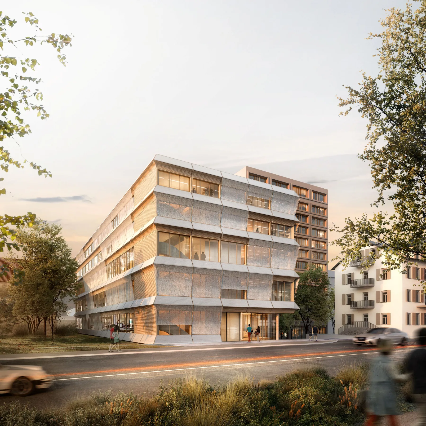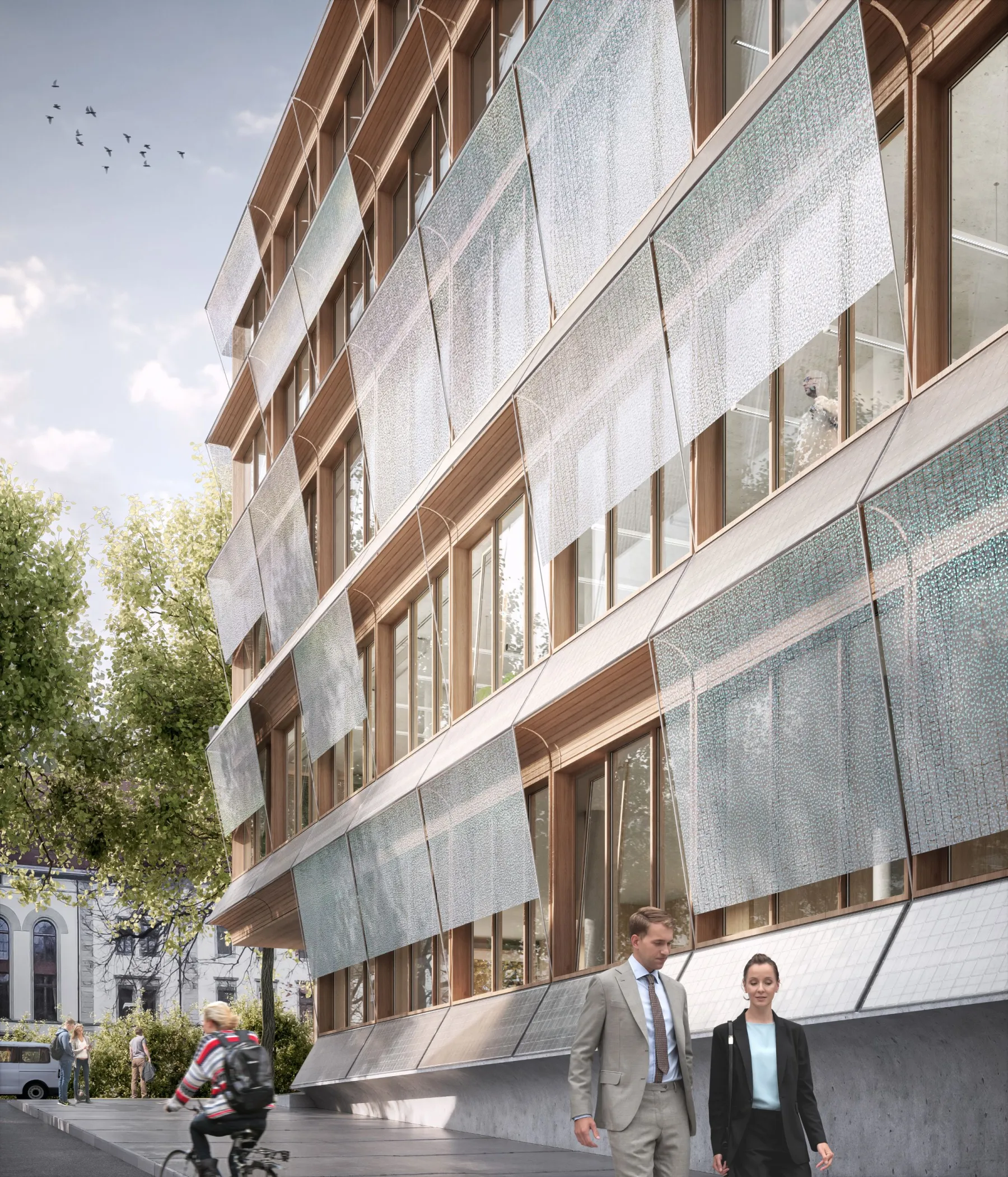 Filigraner Solitärbau mit modularer Holzfassade und nachhaltigem Energiekonzept